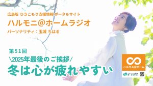 2025.12.30 ハルモ二@ホームラジオ 「2025年(ねん)最後(さいご)のご挨拶 冬は心(こころ)が疲(つか)れやすい〜@ホームラジオ第51回(かい)〜」 広島(ひろしま)のひきこもり支援(しえん)ポータルサイト「ハルモニ@ホーム」のアンバサダーを務(つと)めています。玉城(たまき)ちはるです。こちらのラジオでは、… もっと見(み)る